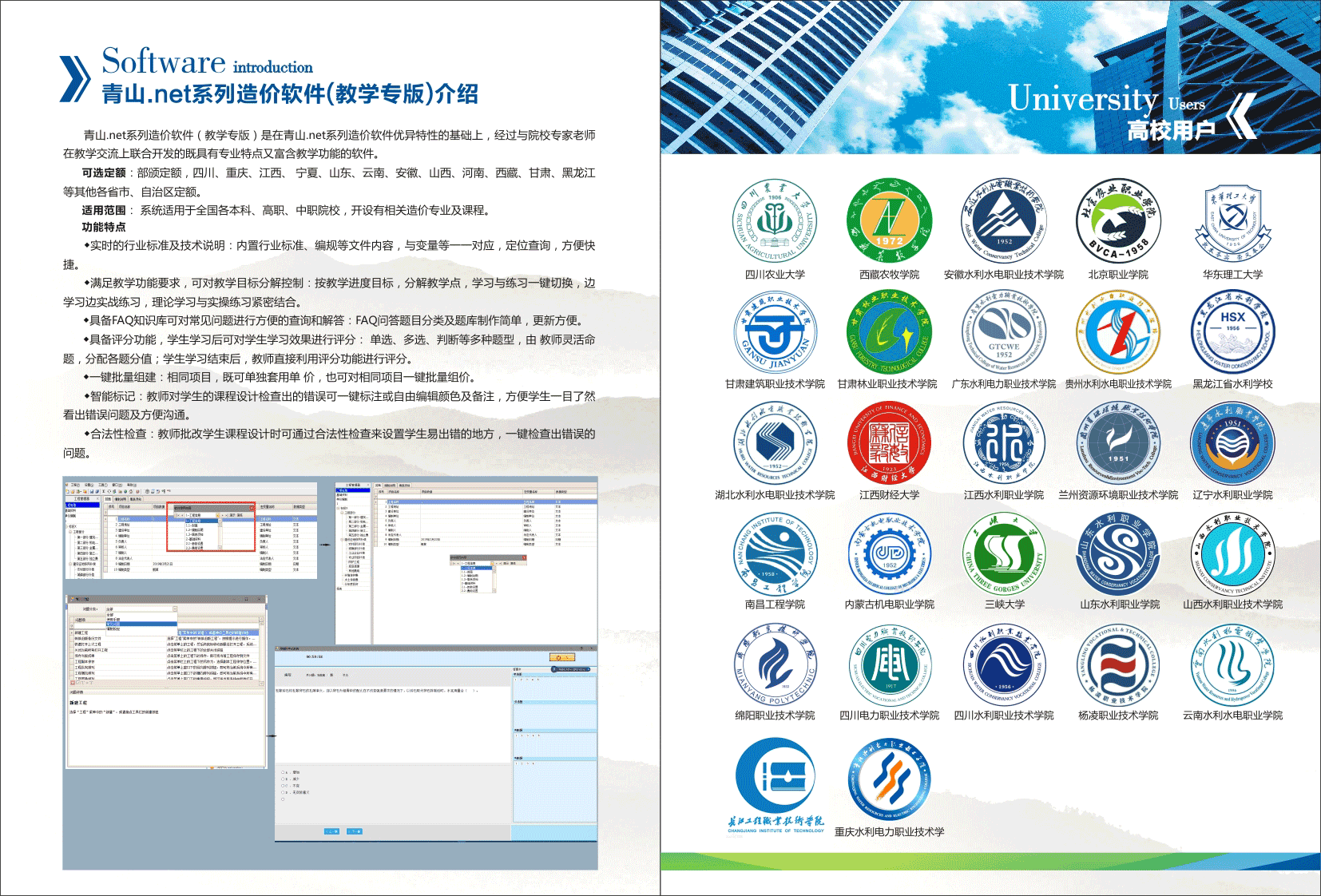 主营:水利水电、土地整理、农业开发、农村水利、地质灾害治理、可再生能源(水、风、光电)、公路桥梁、内河航运等行业工程概预算编制软件;