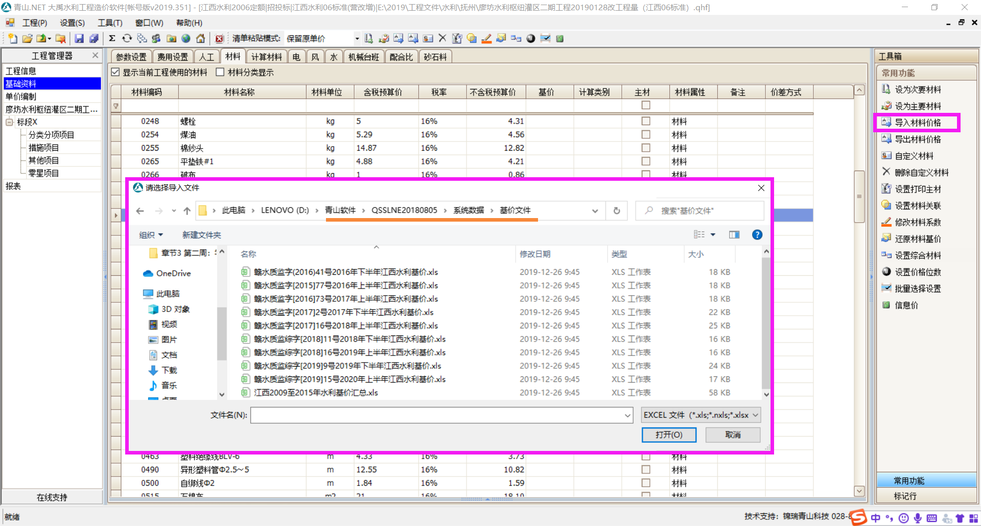 ◆ 系统内嵌材料信息价及基价查询、导入、套用功能,正版用户可免费使用。