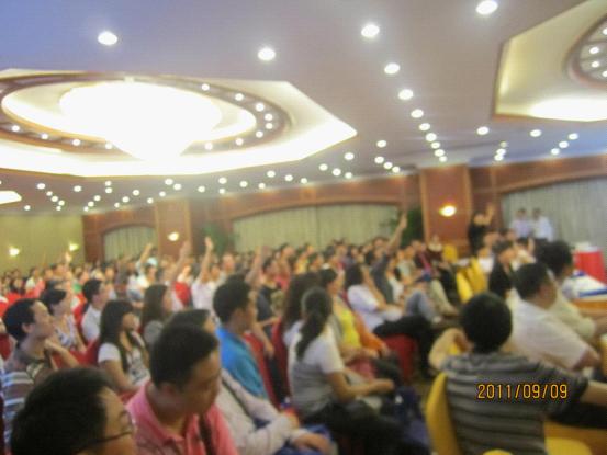 朋友到场,酒店方已无凳子可加,青山公司当即购买了50个凳子,充分利用每一处空间,有些后到的朋友是站着听课的。经会后确认,此次到会的