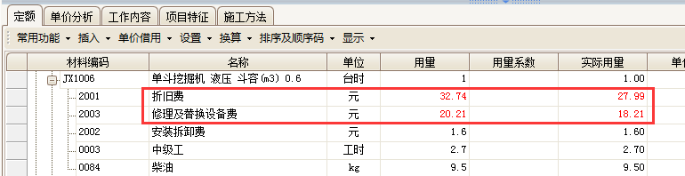 施工机械台时费定额的折旧费除以1.15,修理及替换设备费除以1.11调整系数,程序自动计算,不需要手动处理。