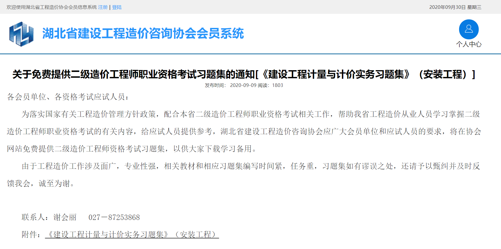 [分享]湖北省2020年二级造价工程师职业资格考试《建设工程计量与计价实务习题集》