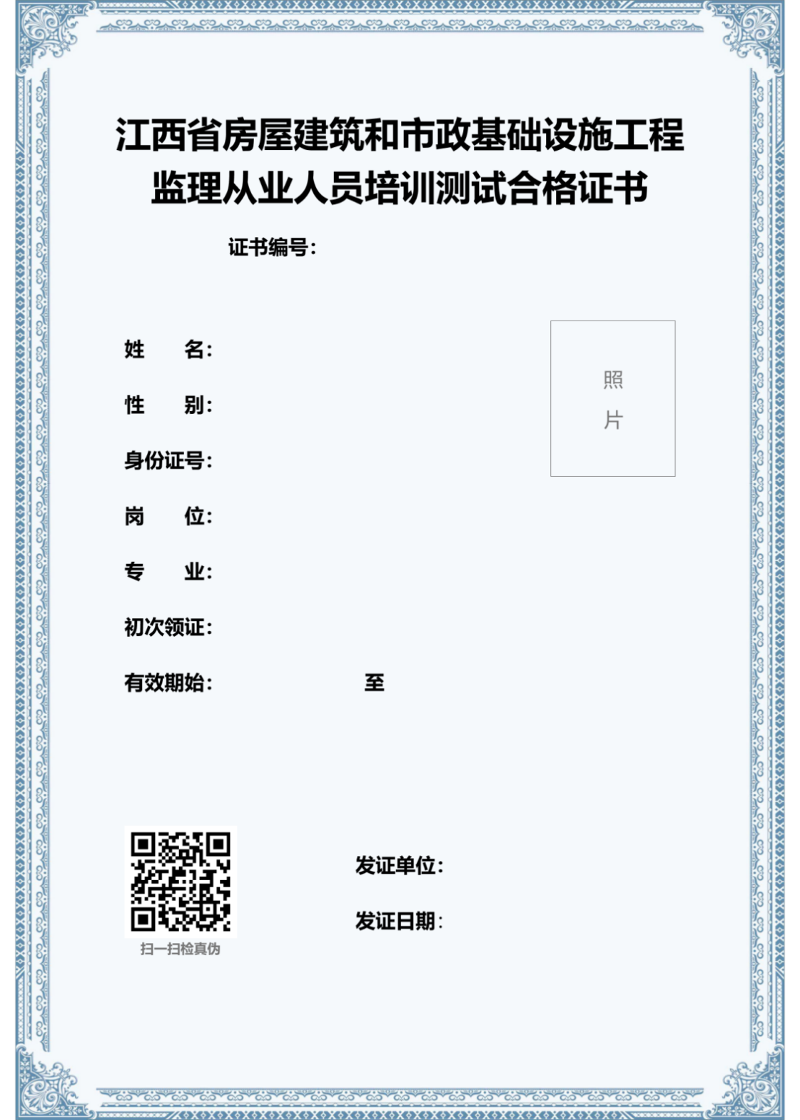 4.江西省房屋建筑和市政基础设施工程监理从业人员培训测试合格证书