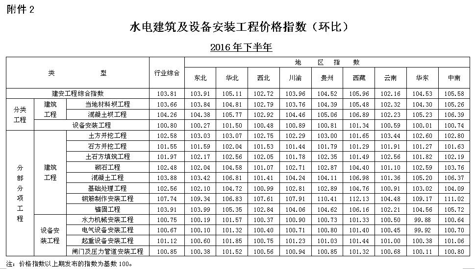 关于发布《水电建筑及设备安装工程价格指数(2016年下半年)》的通知