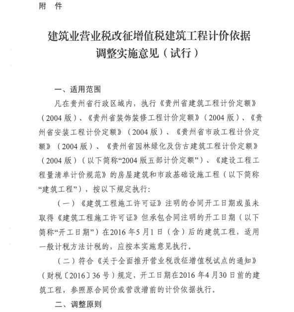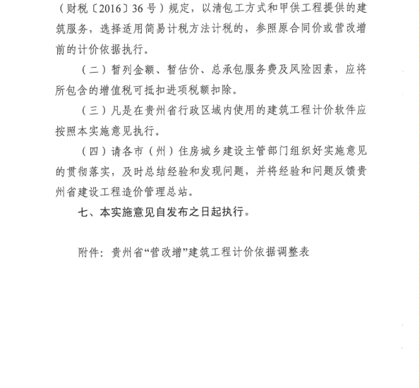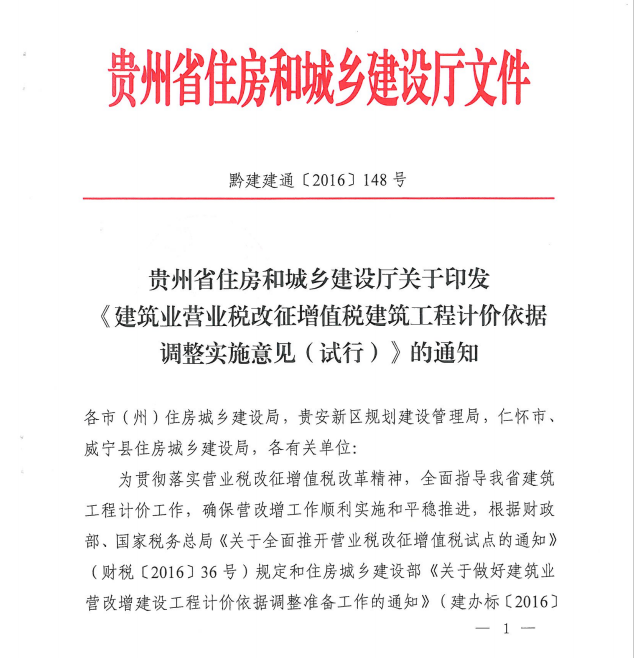 <转>黔建建通[2016]148号文 贵州省住房和城乡建设厅美于印发 «建筑业営业税改征增值税建筑工程计价依据 调整实施意见(试行) »的通知